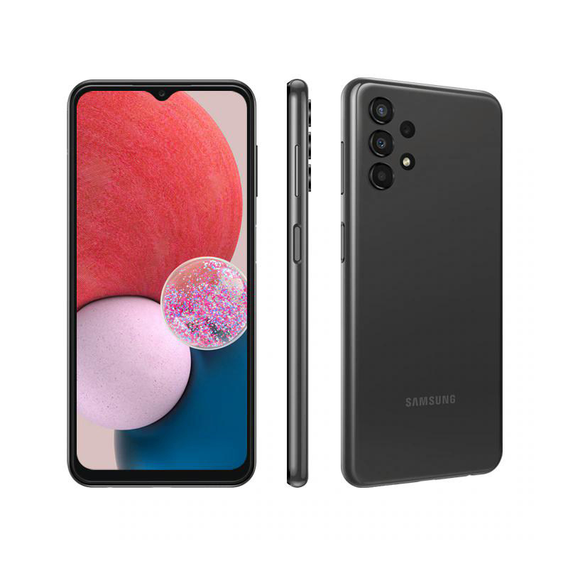 سامسونگ Galaxy A13 یکی از گوشی‌های هوشمند میان‌رده جدید سامسونگ است که به نسبت پارت‌نامبر قبلی خود، در برخی از مشخصات فنی تفاوت‌هایی با یکدیگر دارند. در نمای رو‌به‌رویی این گوشی به صفحه‌نمایش با ابعاد 6.6 اینچ و رزولوشن 1080×2408 پیکسل از نوع PLS مجهز شده که توانایی نمایش 400 پیکسل در هر اینچ را دارد. طراحی ناچ واتردراپ یا همان اینفینیتی U برای این صفحه‌نمایش در نظر گرفته شده است که بریدگی قطره‌ای شکل ناچ در قسمت بالایی و مرکزی صفحه‌نمایش، سنسور دوربین سلفی با رزولوشن 8 مگاپیکسل را در خود جای داده است. در قسمت پشتی هم یک سنسور دوربین اصلی قدرتمند با رزولوشن 50 مگاپیکسل از نوع عریض (wide) در کنار سنسور 5 مگاپیکسل فوق عریض (ultrawide) و دو سنسور با رزولوشن 2 مگاپیکسل از نوع ماکرو و سنجش عمق، سنسور‌های دوربین چهار‌گانه سامسونگ Galaxy A13 را تشکیل می‌دهند. اما اصلی‌ترین تفاوت این گوشی با پارت‌نامبر دیگر، در مشخصات سخت‌افزاری و پردازنده در نظر گرفته شده است. این گوشی به پردازنده هلیو G80 شرکت مدیاتک مجهز شده است که توانایی ارائه عملکرد قابل قبولی را در اجرای بازی‌ها و نرم‌افزار‌های محبوب و کاربردی دارد. در انتها هم، همانند اکثر گوشی‌های هوشمند سری A سامسونگ، این گوشی هم از باتری مناسب و قدرتمندی بهره برده است. باتری با میزان ظرفیت 5000 میلی‌آمپر‌ساعت که به ازای هر بار شارژ صد درصدی، توانایی ارائه طول عمر مفید دو روز را به ازای هر بار شارژ صد درصدی دارد.